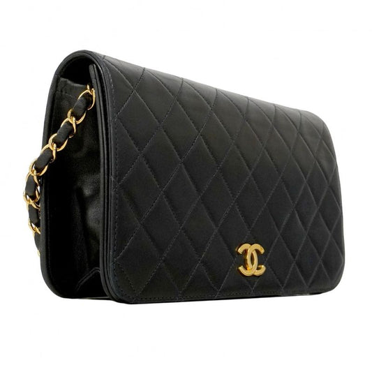 Chanel Shoulder Bag Quilted Lambskin Black Gold