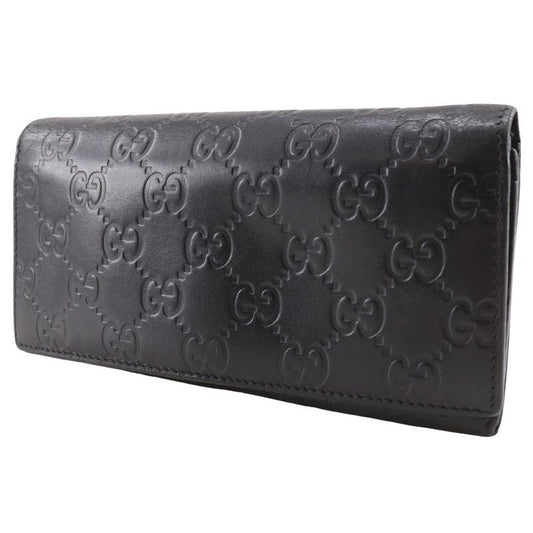 Gucci GG 146229 Striped Leather Black Unisex Long Wallet