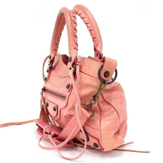 Balenciaga Motocross The First Bag Agneau Leather Studs Hardware City Tote Pink