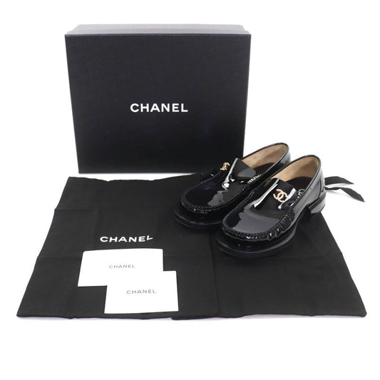 CHANEL 22B G39447 F Patent Leather Loafer With Pearl Coco Mark Black 34.5 With