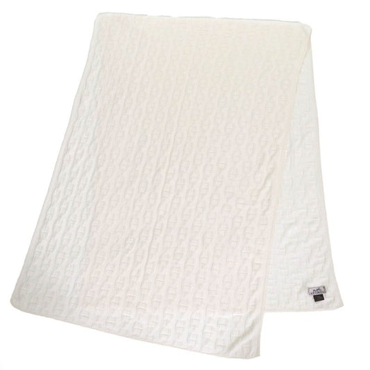 Hermes Cotton Cashmere Chaine D'ancre Pattern Large Shawl Scarf Off White Made