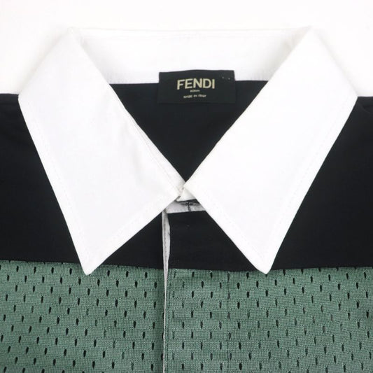 Fendi 2020 Faf630 Striped Logo Embroidery Mesh Short Sleeve Polo Shirt Green