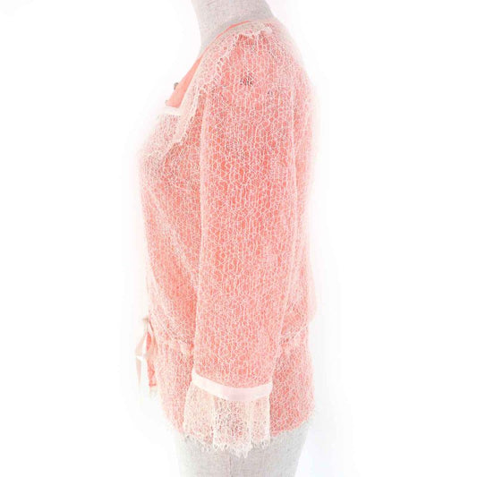 CHANEL P38256 Coco Mark Button Ribbon Belt Full Lace Cardigan Bolero Salmon