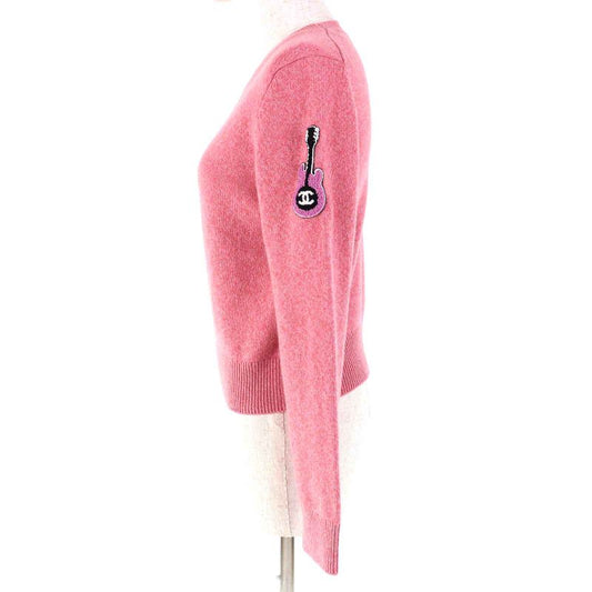 CHANEL P77562 98% Cashmere Coco Mark Guitar Patch Crewneck Long Sleeve Knit