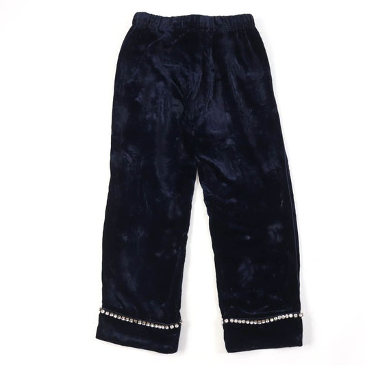 Gucci 493591 Silk Blend Velour Pants Bottoms With Bijoux Navy 36 Made In Italy