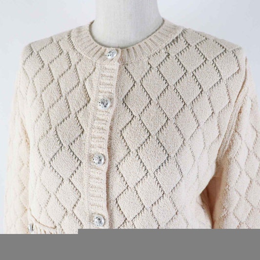 CHANEL 23S P75071 Cotton Polyamide Cropped Cardigan With Rhinestone Coco Mark