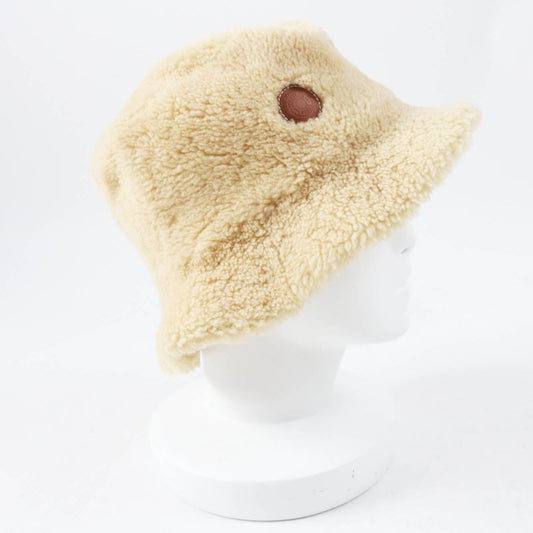 Hermes Fauve Mouton Bucket Hat/hat With Leather Patch Beige 57 Made In France