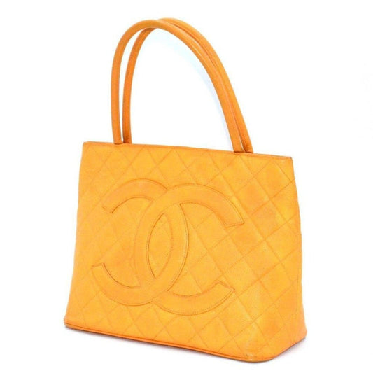 Chanel Caviar Leather Medallion Tote Quilted Shoulder Bag Orange