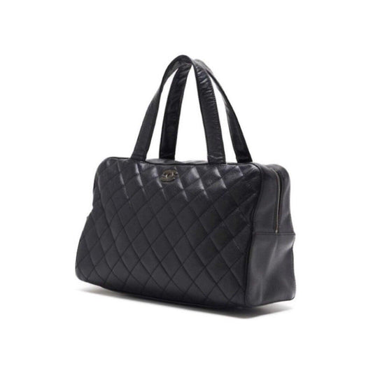 CHANEL CC Vintage Quilted Bowler Shoulder Hand Bag Tote Caviar Leather