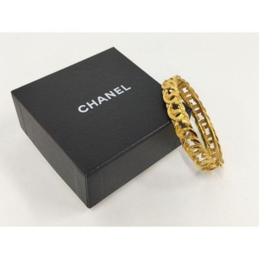 CHANEL CC Logo Vintage Bracelet Cuff Bangle Gold Cambon Paris