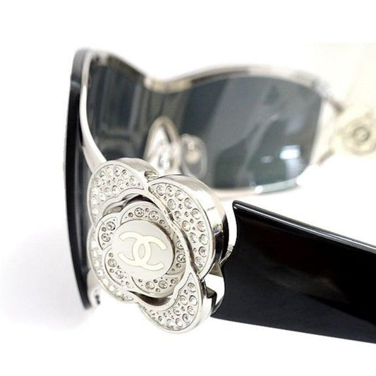 CHANEL CC Logo Vintage Shield Gradient Sunglasses Swarovski Crystal Camellia
