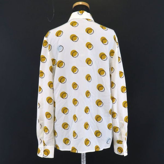 Fendi Sheer Silk Shirt Blouse 40 Long Sleeve Neck Ribbon Logo Gold Button