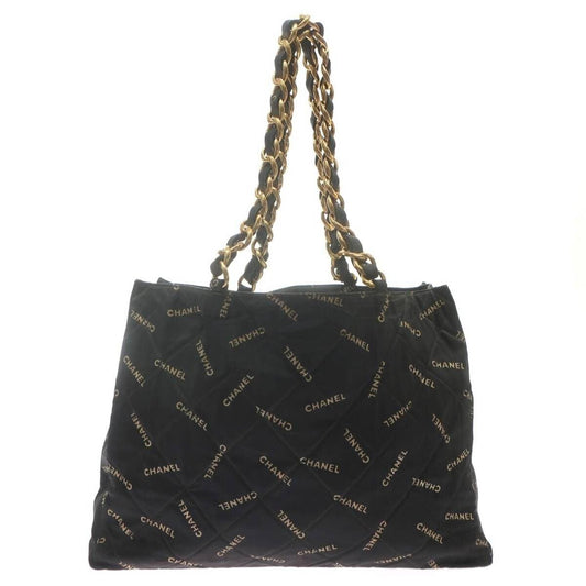RARE Authentic CHANEL CC Logo Jersey Quilted Shoulder Bag Chain Black Gold