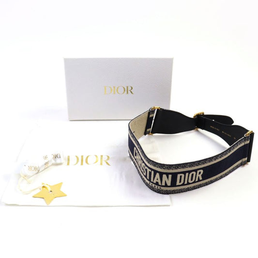 Christian DIOR 50-ma-0220 Embroidery Logo Canvas Belt Indigo Blue With Box And