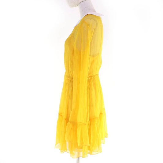 Gucci 728125 100% Silk Round Collar Chiffon Dress Yellow 44 Hanger Made In