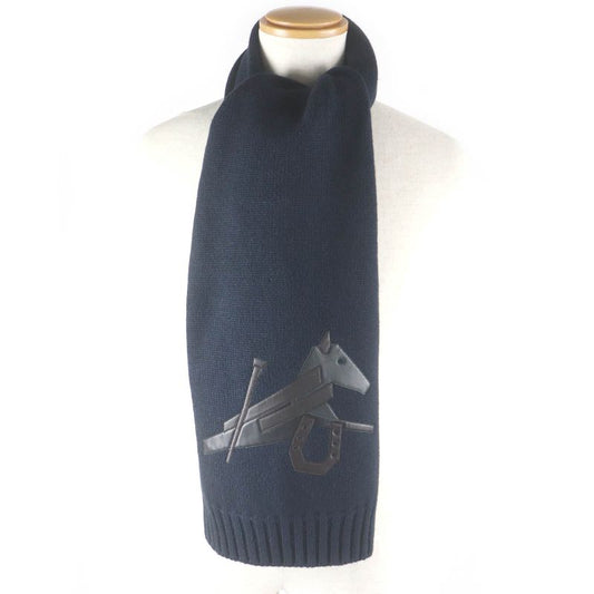 Hermes H393803t Puzzle Ekestre Cashmere Silk Lamb Leather Patch Scarf Navy Made