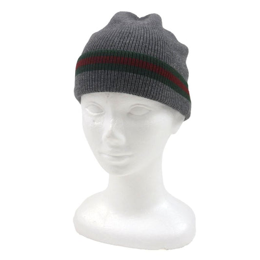 Gucci Wool Silk Sherry Line Webline Hat Knit Cap Gray L Men's