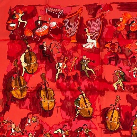 Hermes Carre 90 Concerto Red 100% Silk Scarf