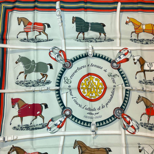Hermes Carre 90 Couvertures ET Tenues Horsehair Silk Scarf Multicolor