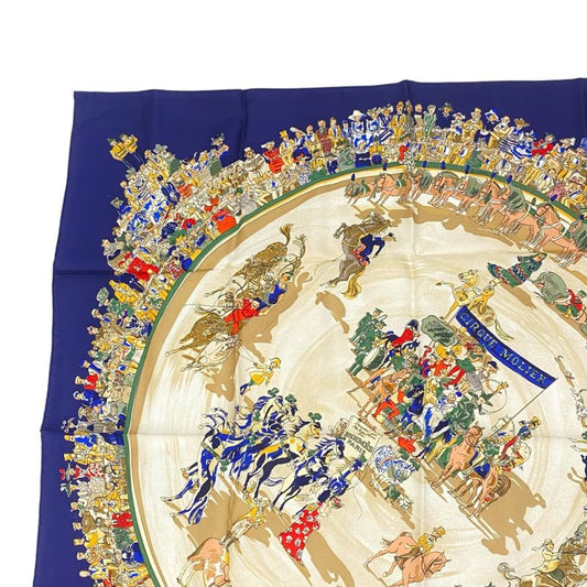 Hermes Carre 90 Cirque Molier Molie Circus Scarf Silk Navy