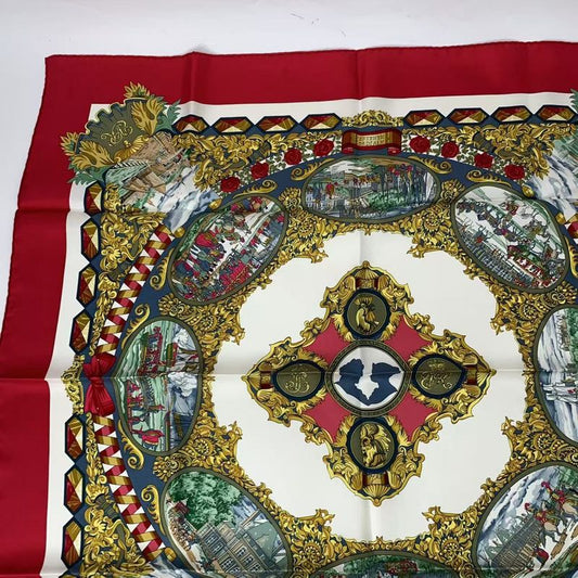 Hermes Carre 90 L'entente Cordiale French-british Alliance Scarf Silk Red