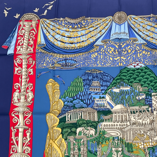 Hermes Carre 90 L Atlantide Atlantis Continental Silk Scarf Navy