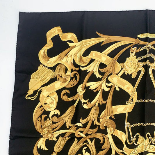 Hermes Carre 90 LE MORS A LA Conetable Gag Grace Black And Gold Scarf With Box