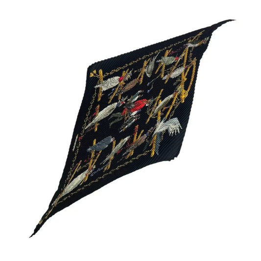 Hermes Pleated Scarf Birds Of The King Silk Black With Box