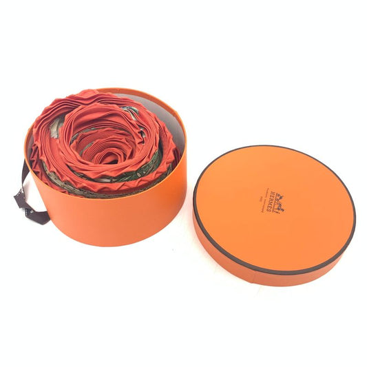Hermes Pleated Sichlian Sichuan Sicilian Animal Scarf 100% Silk Orange