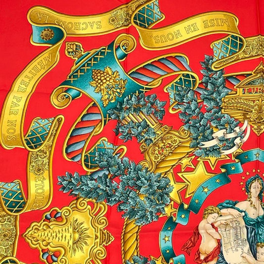 Hermes Scarf Carre 90 Silk Europe European Goddess Child Red