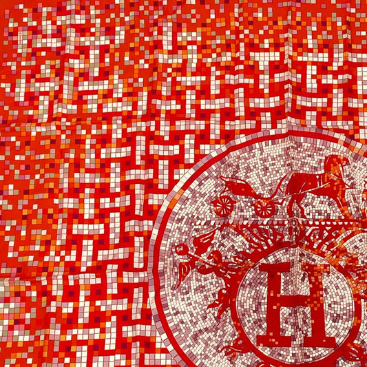 Hermes Scarf Carre 90 Silk Mosaiqueau24 Mosaic 24 Horse Pattern Orange Multicolo