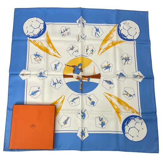 Hermes Scarf Silk Carre 90 Vive Les Champions! Viva Champions Soccer Blue