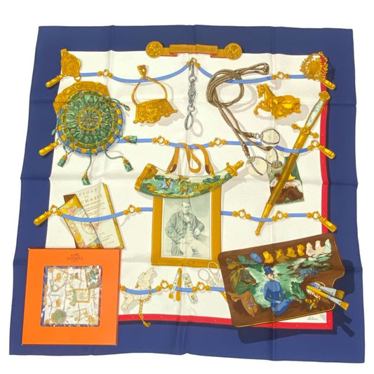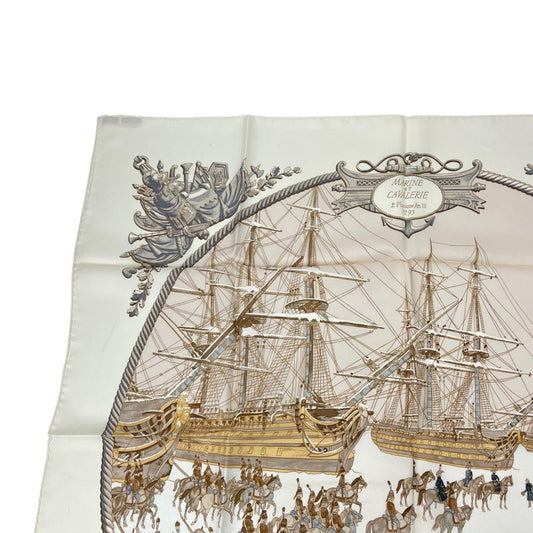 Hermes Scarf Silk Carre 90 Marine ET Cavalerie Sea And Cavalry White