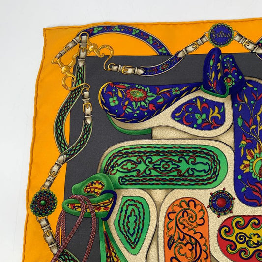 Hermes Scarf Silk Pleated Oriental And Western Jewel Multicolor With Box
