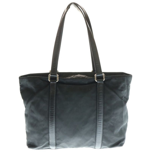Prada Tessuto Tote Handbag Black Nylon And Leather Silver Hardware