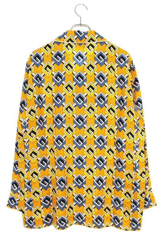 Gucci 663490 Zlp98 G All Over Silk Pajama Long Sleeve Shirt Men's S