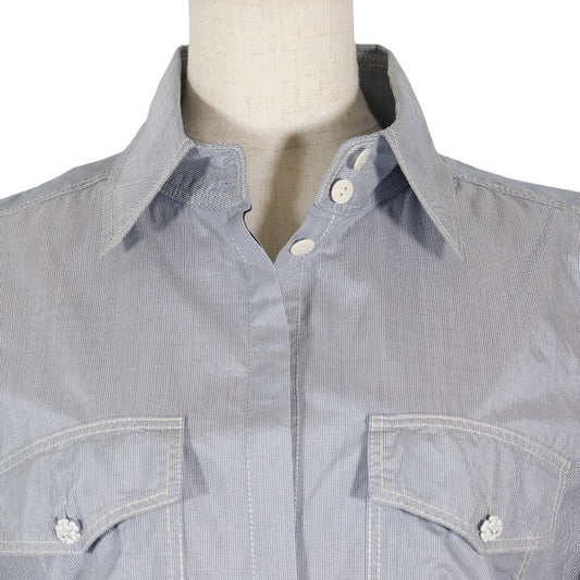 Chanel P24930v15491 Silk Blue Women's Short Sleeve Shirt