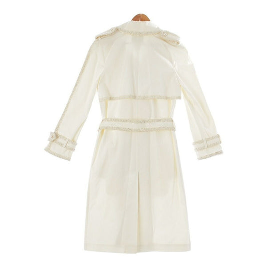 CHANEL 04P Pearl Double Button Tweed Trench Coat White Cream 38 Outerwear