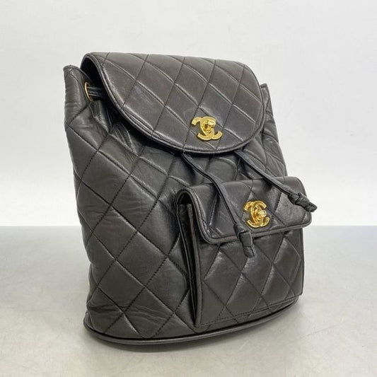 Chanel Backpack Daypack Matelasse Lambskin Black Gold Hardware Women