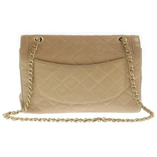 CHANEL CC Paris Limited Double Flap Bag Lambskin Matelasse Chain Beige