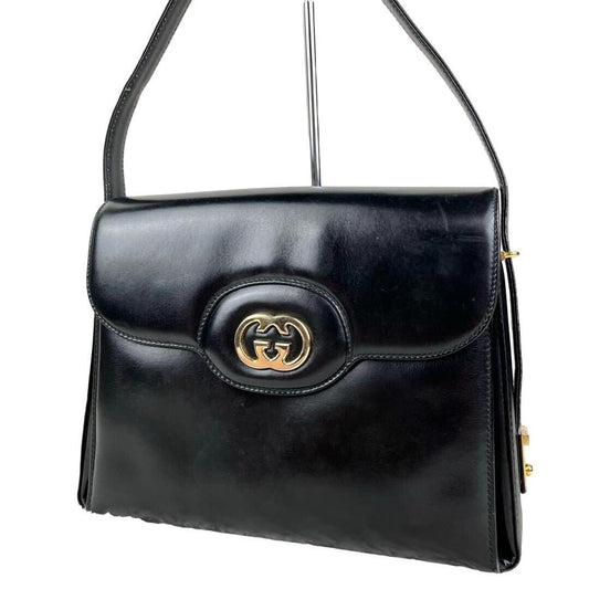 GUCCI GG Logo Leather Vintage Shoulder Bag Purse Black