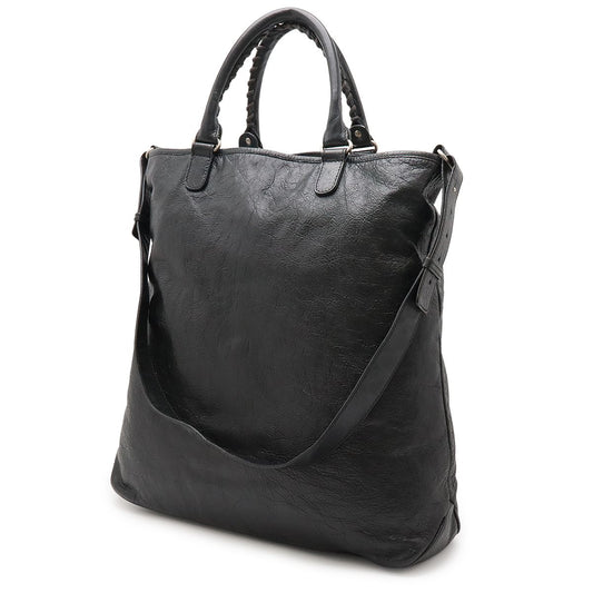 Balenciaga Tote Bag 2WAY Shoulder Bag Leather Black With Silver Hardware 298978