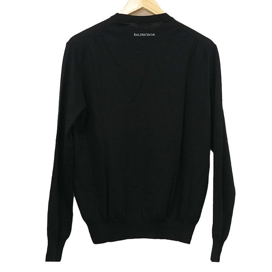 Balenciaga Back Logo Crew Neck Knit 534419 Size S Black