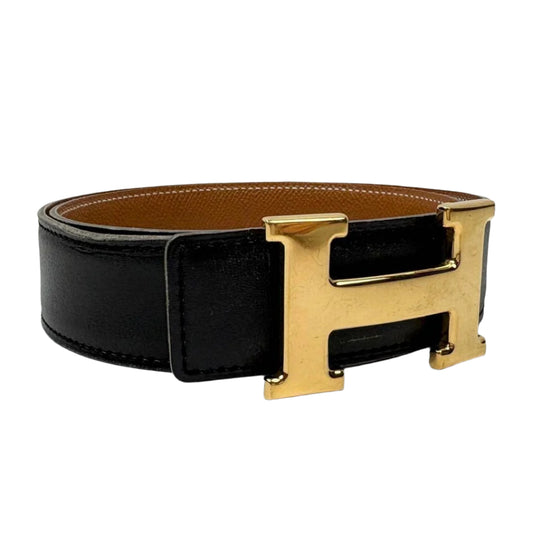 Hermes Constance H Logo Reversible Belt 32mm Black Brown Leather Gold