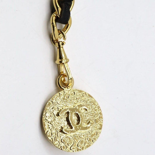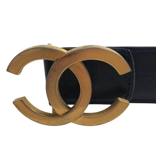 CHANEL Vintage CC Logo Black Leather Belt Gold Buckle