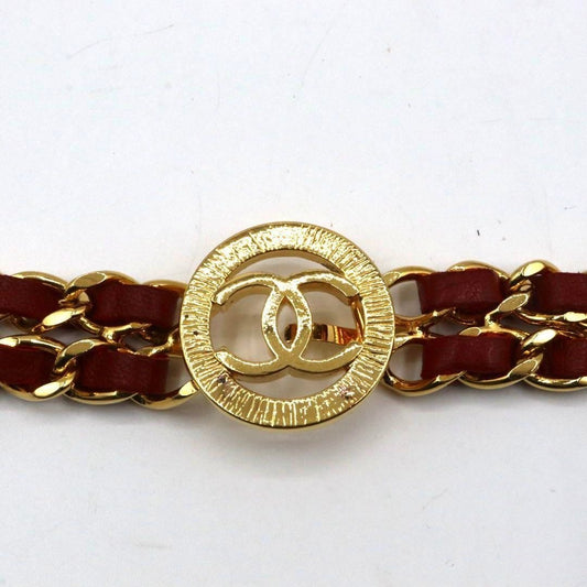CHANEL Vintage CC Logo Leather Chain Belt Gold Red