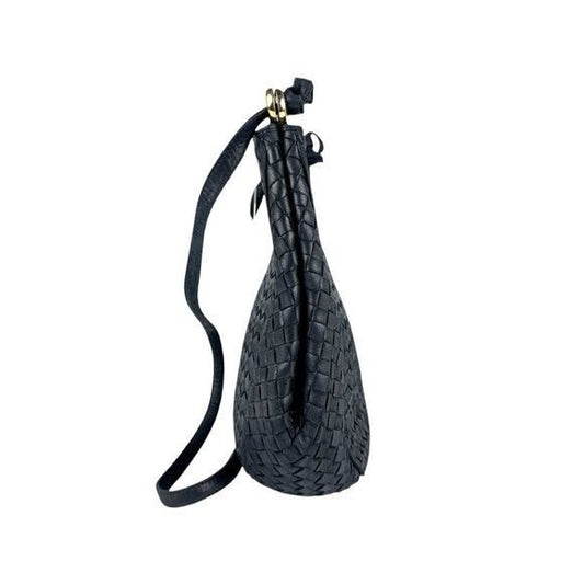 Bottega Veneta Intrecciato Nappa Shoulder Bag Purse Navy Black Leather