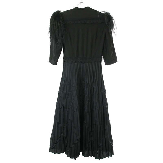 Bottega Veneta 17aw Fur Sleeve Pleated Dress 465606 V0k02 Black 38