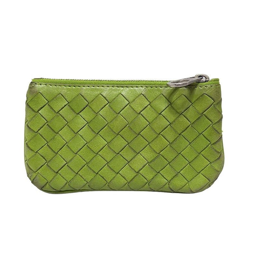 Bottega Veneta Coin Case Intrecciato Yellow Green Leather