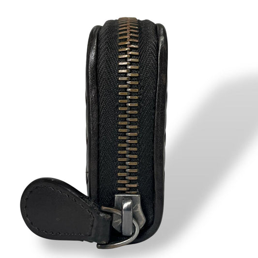 Bottega Veneta Cassette Zip Around Wallet Compact Wallet Black Leather Gold